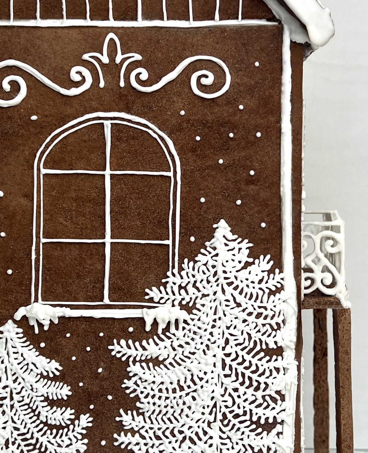 Construction architecturale sur deux niveaux, avec structure technique, travail précis des fenêtres, pochage détaillé et scènes illustrées sur chaque façade, équilibrant précision et atmosphère. Réalisée avec une pâte type Medovníky LPK, apportant un parfum durable à l’ensemble.